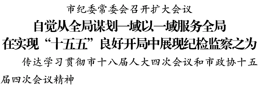 会议指出,市两会是在“十四五”圆满收官、“十五五”开局起步的关键节点召开的重要会议。全市各级纪检监察机关要坚持围绕中心、服务大局,立足职能职责,自觉从全局谋划一域、以一域服务全局,在实现“十五五”良好开局中展现纪检监察之为。