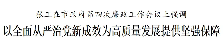 2月9日下午,市委副书记、市长张工出席市政府第四次廉政工作会议并讲话。他强调,要深入学习贯彻习近平总书记在二十届中央纪委五次全会上的重要讲话精神,落实国务院第四次廉政工作会议精神,按照市委决策部署和市纪委五次全会要求,以更高标准更实举措推进政府党风廉政建设和反腐败斗争,以全面从严治党新成效为实现“十五五”开好局起好步提供坚强保障。